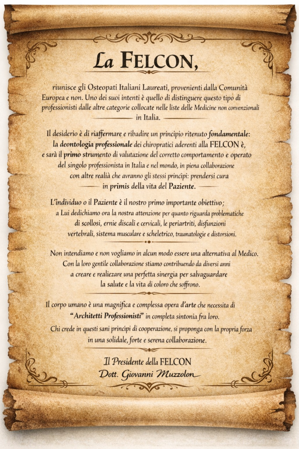 Osteopata Professionista Certificato e Iscritto alla FELCON