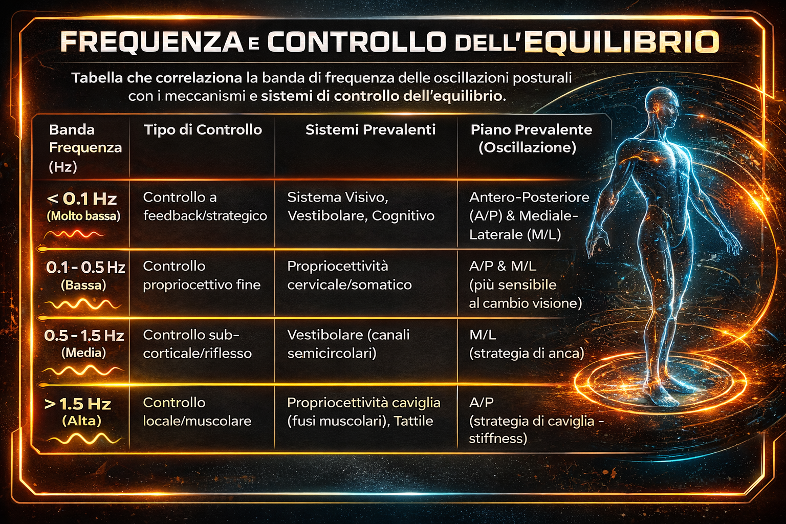 Questi dati sono cruciali per capire meglio i pattern di oscillazione del corpo e individuare eventuali anomalie.