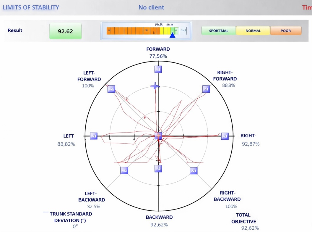 Grazie al test del limite di stabilità, il soggetto viene "forzato" a spostare il proprio equilibrio indirizzando il proprio Centro di Pressione (CoP) in diverse direzioni al fine di individuarne l’efficienza e il controllo della stabilità.
