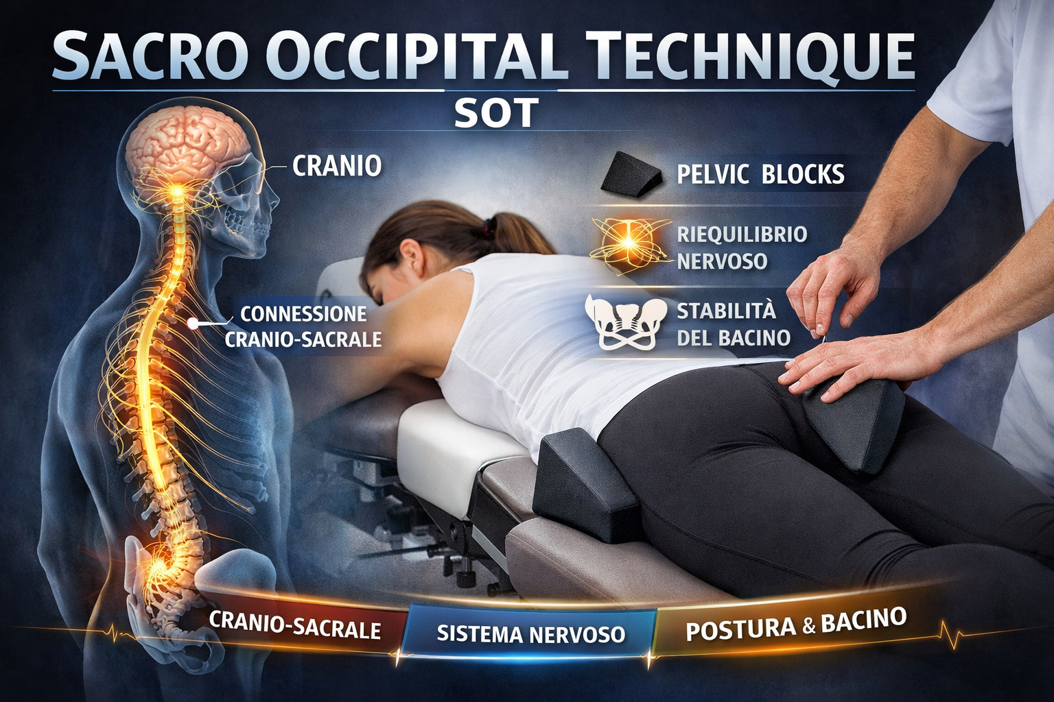 La Sacro Occipital Technique (SOT) è una tecnica chiropratica avanzata che considera il corpo umano come un'unità funzionale integrata, in cui cranio, colonna vertebrale, bacino e sistema nervoso lavorano in stretta connessione tra loro.